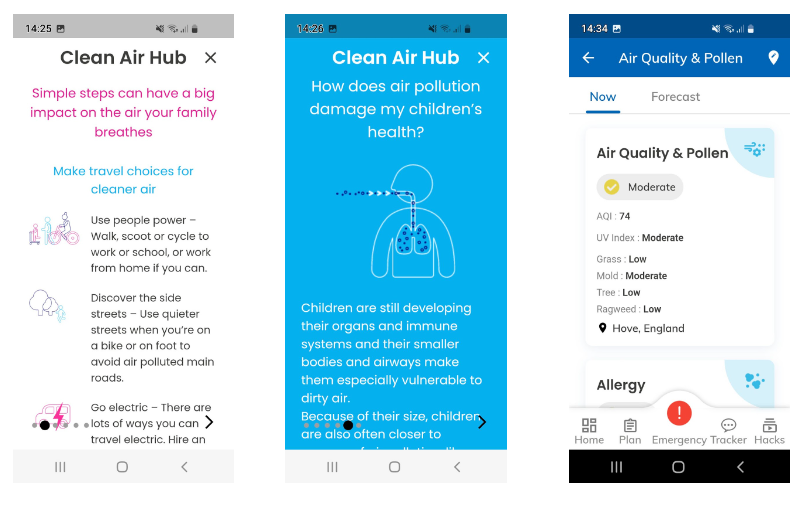 The Digital Health Passport has daily air quality alerts, and instructions from Clean Air Hub. Easy to read air quality education. Together, the alerts and knowledge of what to do, may help with trigger avoidance.